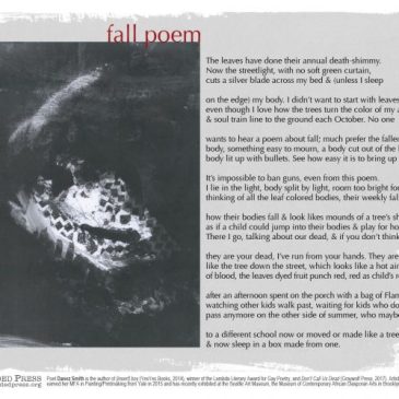 The Broadsided Press, a publisher dedicated to “putting literature and art on the streets,” has published a group of broadsides on the topic “Bearing Arms: Responding to Guns in American Culture, 2017.” To learn more about the project, visit their Web site.